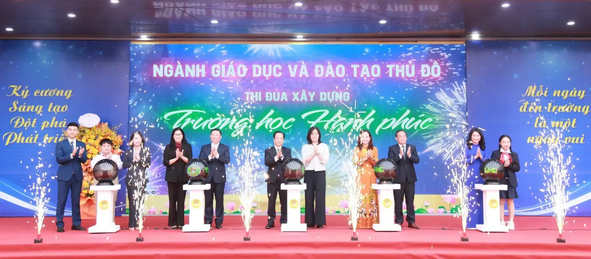 Representatives and leaders of participating units pressed the button to launch the emulation movement for building “Happy Schools” in the 2025–2030 period. Photos: Kinh te & Do thi Newspaper