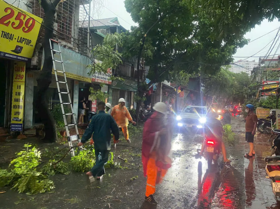 Authorities at Khuong Dinh Ward respond to storm damage on the afternoon of July 19.