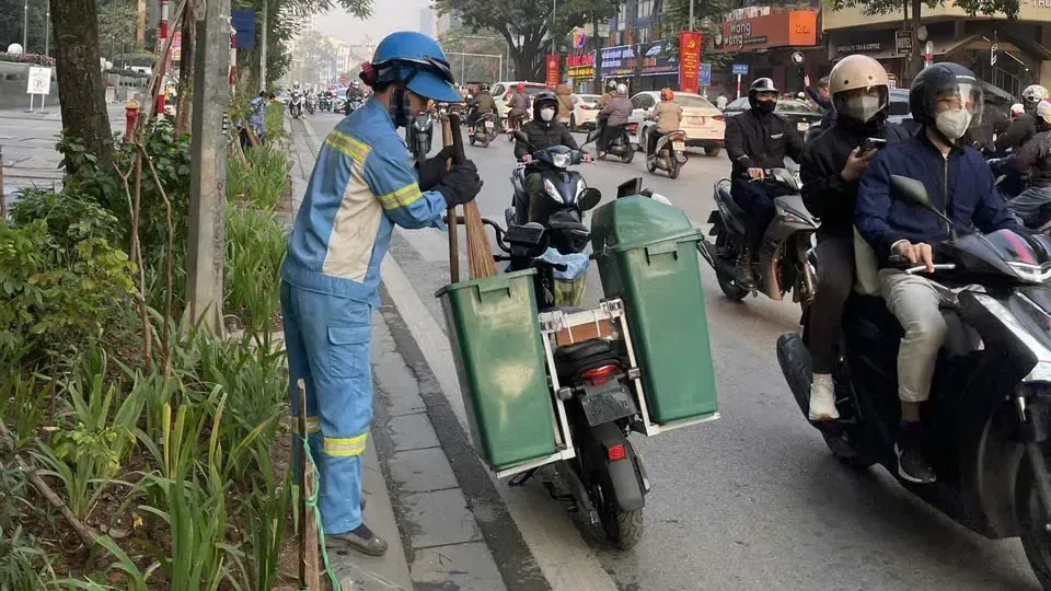 A sanitation worker clean the streets in Dong Da Ward. Photo: Van Nhi/The Hanoi Times