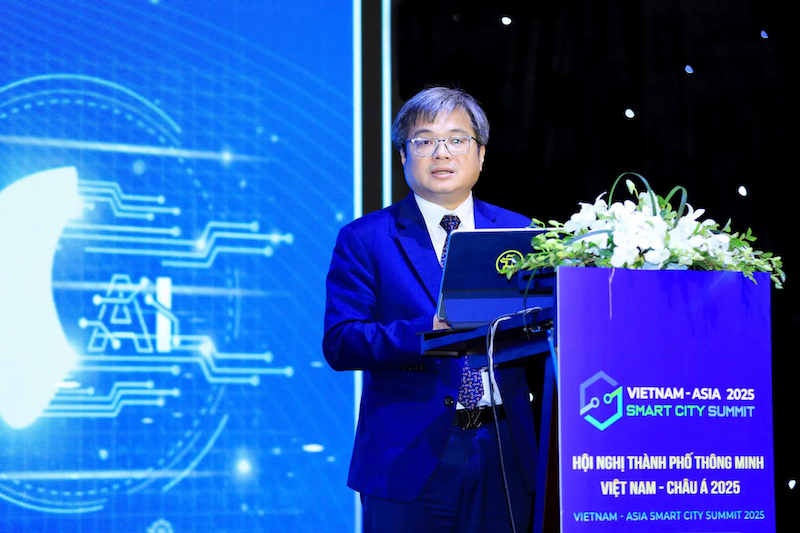 Truong Viet Dung, Vice Chairman of the Hanoi People’s Committee, speaks at the plenary session of the Vietnam-Asia Smart City Summit 2025. Photos: Kinh te & Do thi Newspaper