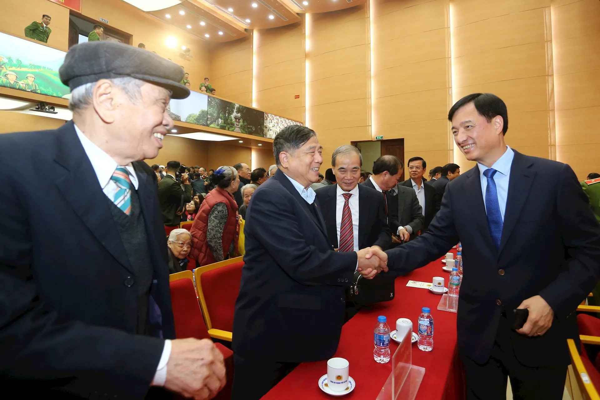 Hanoi Party Secretary Nguyen Duy Ngoc receives retired police officers at the meeting. Photos: Lam Thanh