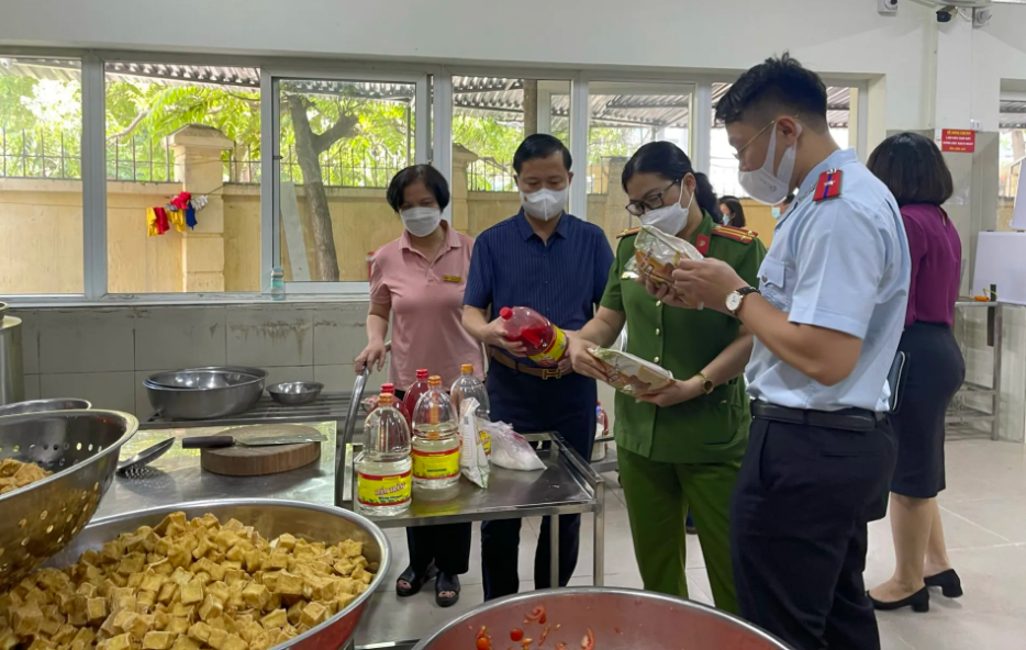 Hanoi’s Interdisciplinary Inspection Team No. 1 inspects the canteen at Viet Hung Primary School in Long Bien Ward. Photo: Thanh Hai/The Hanoi Times