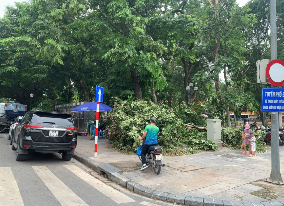 Fallen trees were cleared from the corner of Le Thach Street on July 20 following a heavy storm. Photo: Hong Thai/The Hanoi Times