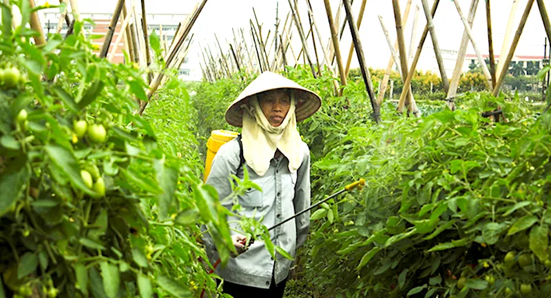 A farmer in a high-tech agricultural field in Hanoi's Dong Anh District. Photo: Tung Nguyen/The Hanoi Times