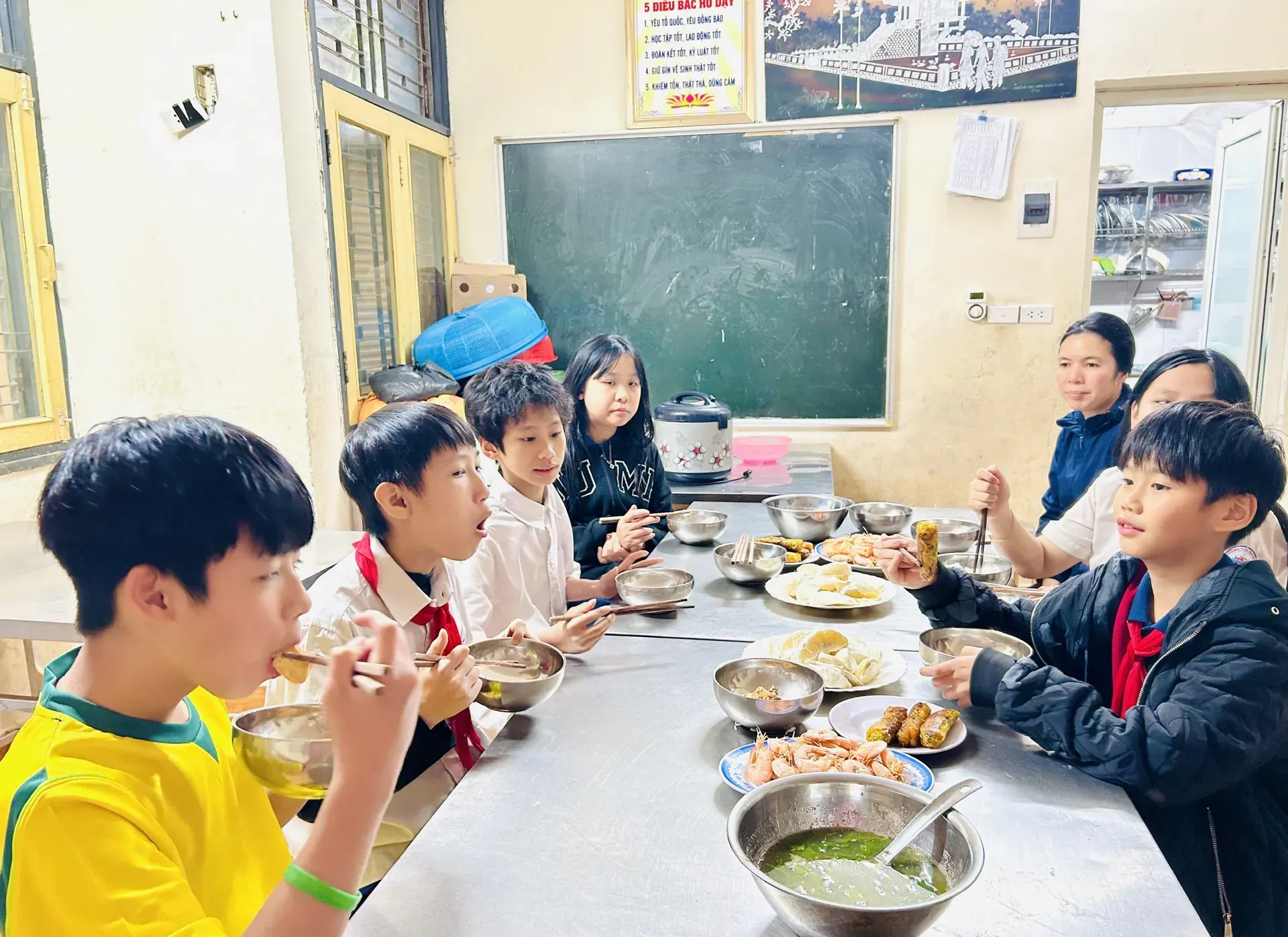 Behind her, Mother Phung Thi Hien moves quietly between the garden and the kitchen. She is responsible for 22 children in the village, and she knows their habits well. “On cold days, I cook rice and dishes right before the children come home from school so they can enjoy hot meals,” she said.