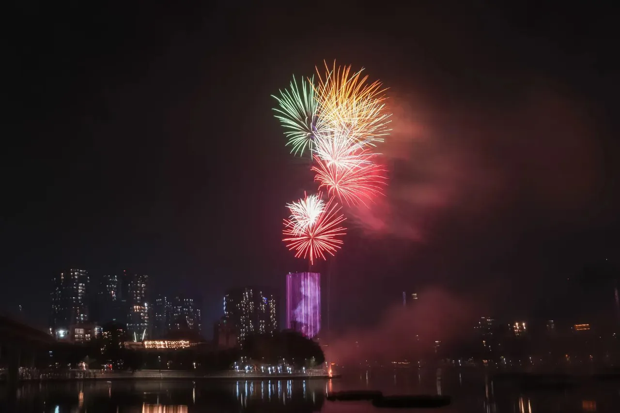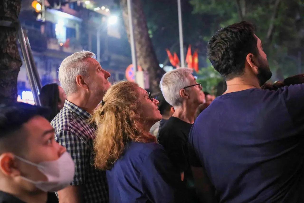 International visitors watch a spectacular high- and low-altitude fireworks display illuminate the sky above Hoan Kiem Lake on Lunar New Year’s Eve 2026. Photo: Duy Minh/ The Hanoi Times