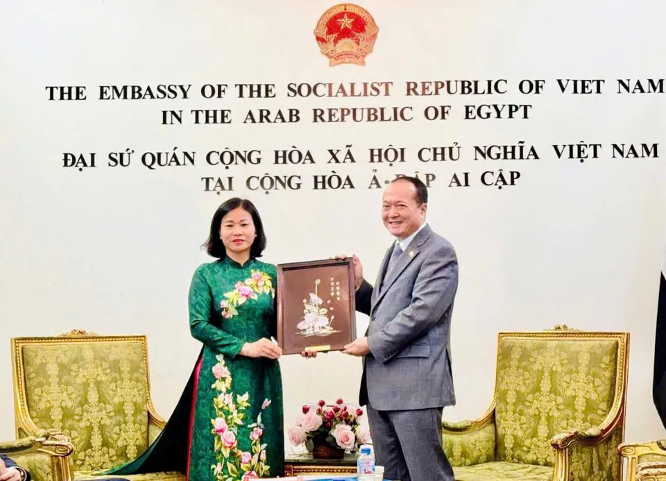 She expressed her hopes that the embassy would continue to promote exchanges at all levels, strengthen people-to-people ties, and boost cooperation in tourism, investment, and trade between Hanoi and Cairo, as well as with other Egyptian partners. She also requested the embassy’s continued support for the safety, stability, and well-being of the Vietnamese community in Egypt and neighboring countries.