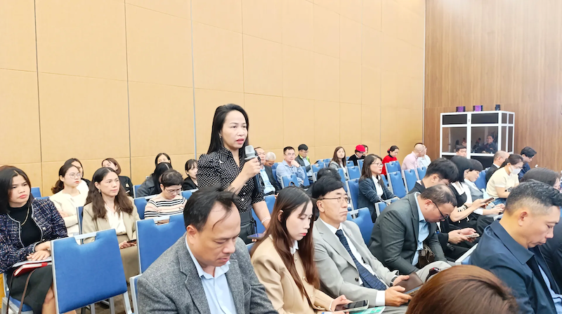 A business representative raises proposals at the dialogue. Photo: Kinh te & Do thi Newspaper