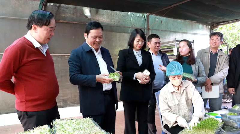A working delegation from the Ministry of Agriculture and Environment inspects a sprout production facility in Hanoi. Photo: Kinh te & Do thi Newspaper