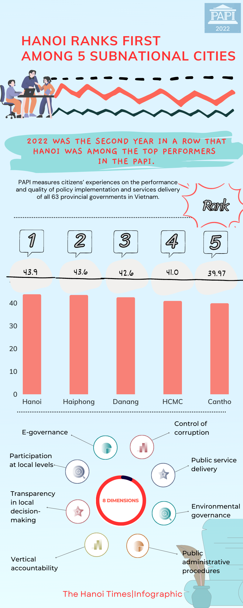 [Infographic] Hanoi ranks first among five subnational cities in PAPI 2022