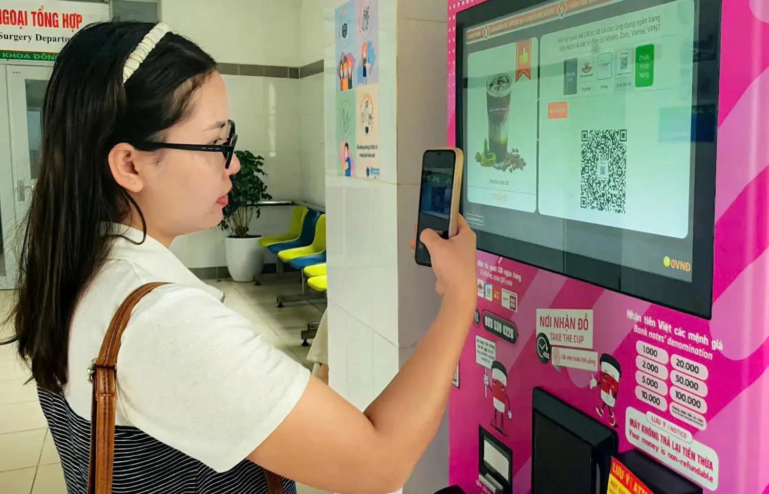 Consumers scan QR codes for payment at a shop in Hanoi's Dong Anh Commune. Photo: Pham Hung /The Hanoi Times