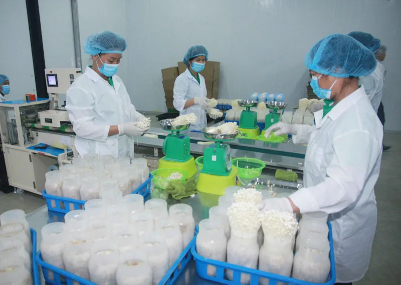 The project of organic enoki mushroom cultivation is applying the Japanese technology in My Duc district. Photo: Hanoimoi |