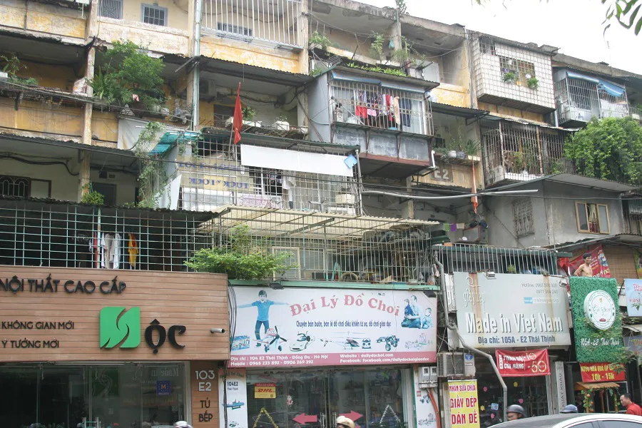The six rotten apartment buildings include four in the inner city district of Ba Dinh, including C8 Giang Vo condo, G6A Thanh Cong, Ngoc Khanh, and the apartment blocks of the Ministry of Justice and 148-150 in Son Tay Street, and two others at 51 Huynh Thuc Khang Street in Dong Da District. These buildings were built from 1954 to 1990.