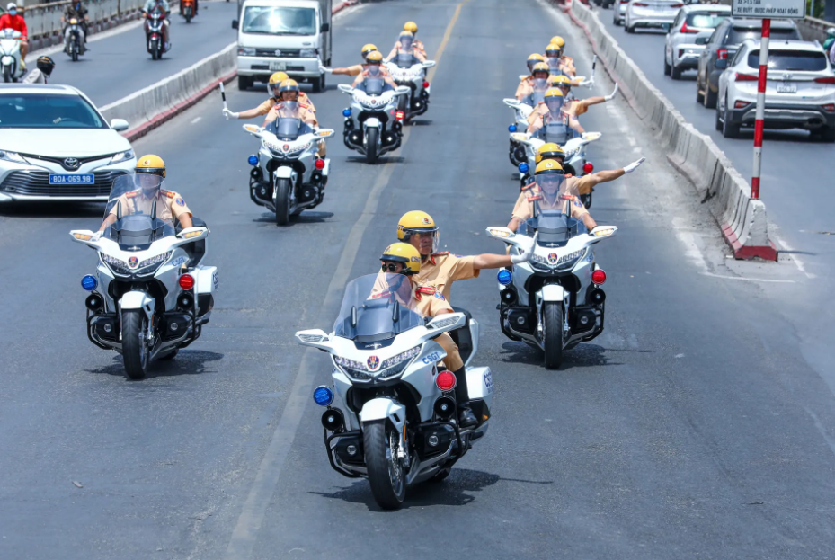 Hanoi traffic police guide and escort delegate motorcades. Photo: Pham Hung/The Hanoi Times
