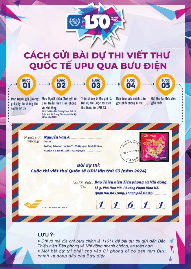 Entries must be handwritten and not exceed 800 words. The organizing committee will translate the winning letters by the Vietnamese contestants into English or French and send these copies along with the original to the jury of the UPU International Letter Writing Contest.
