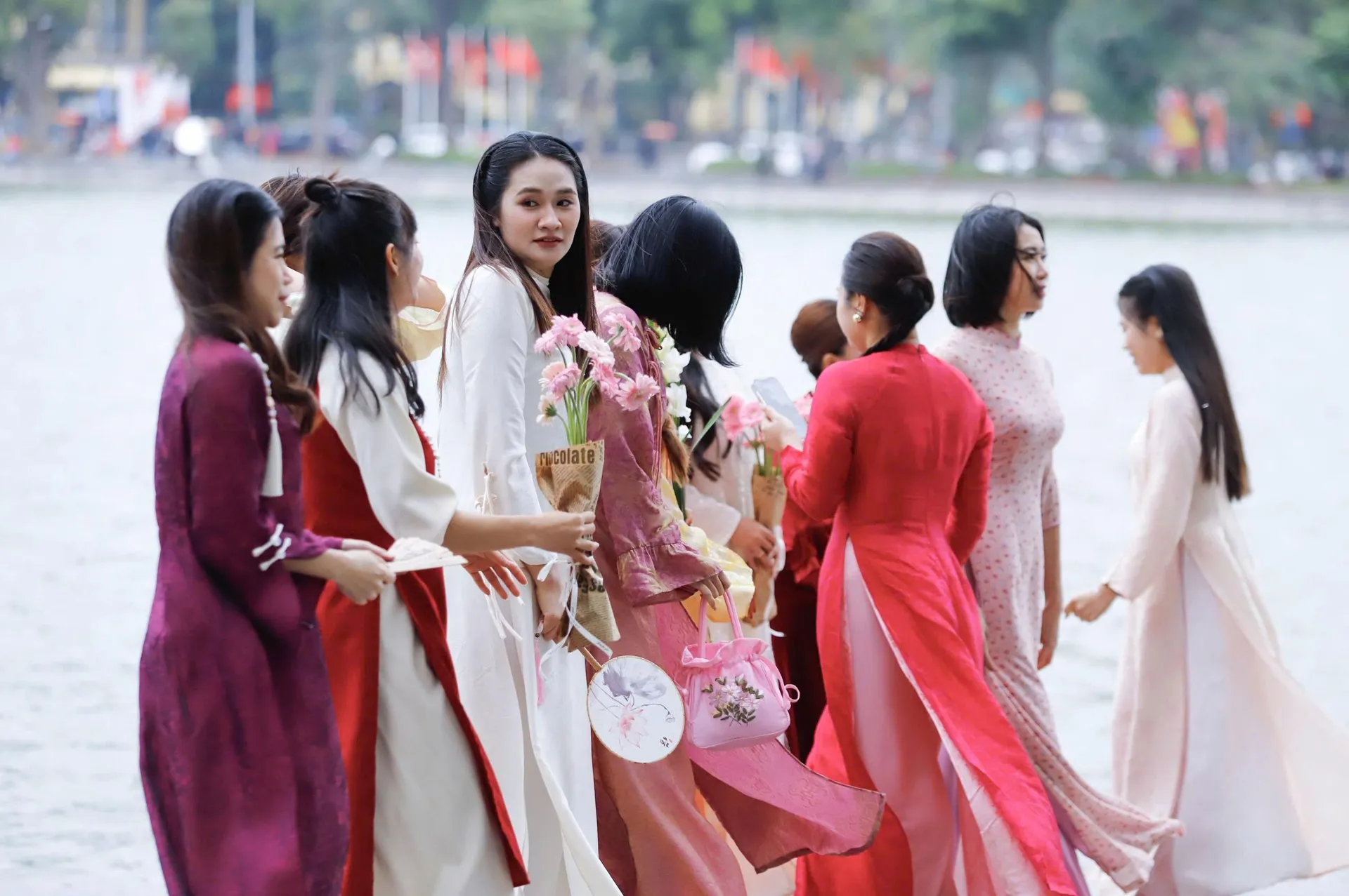 Women in traditional ao dai add a sense of occasion for locals and visitors alike as Tet approaches. Photos: Duy Khanh/ The Hanoi Times