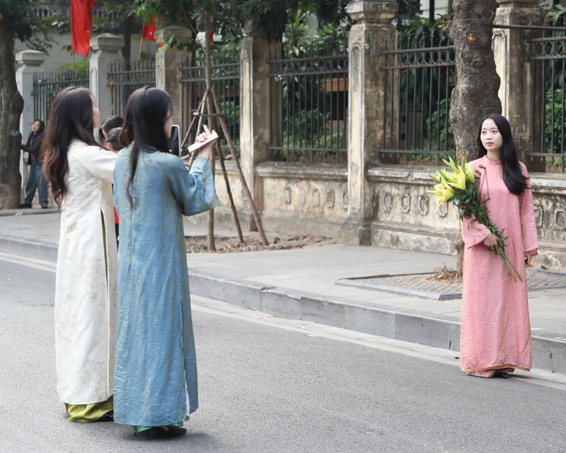 The practice of photographing ao dai at historic sites during the Lunar New Year has become an annual custom in Hanoi, embraced by locals and increasingly visible to visitors.