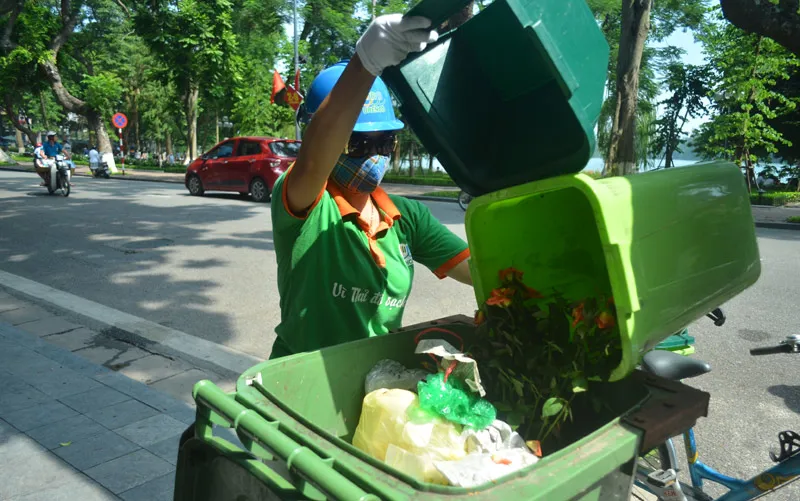 Domestic waste collection on Trang Thi street. Photo: Pham Hung/Kinhtedothi.vn |