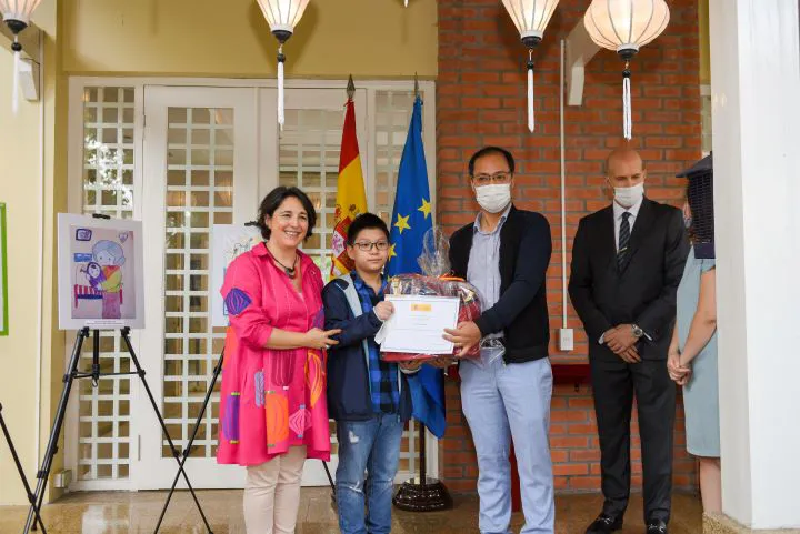 Nguyen Bao Dang, a 4th grader of Thang Long Primary School in Hanoi has won the first prize of the painting contest, which was launched by the Spanish Embassy in Vietnam in collaboration with the Vietnamese Women´s Museum.