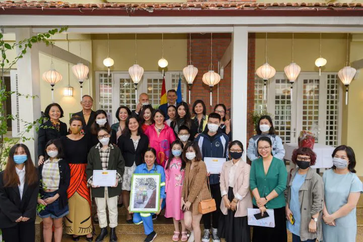 | Spanish Ambassador to Vietnam took a group photo with the participants and winners of the awarding ceremony. |
