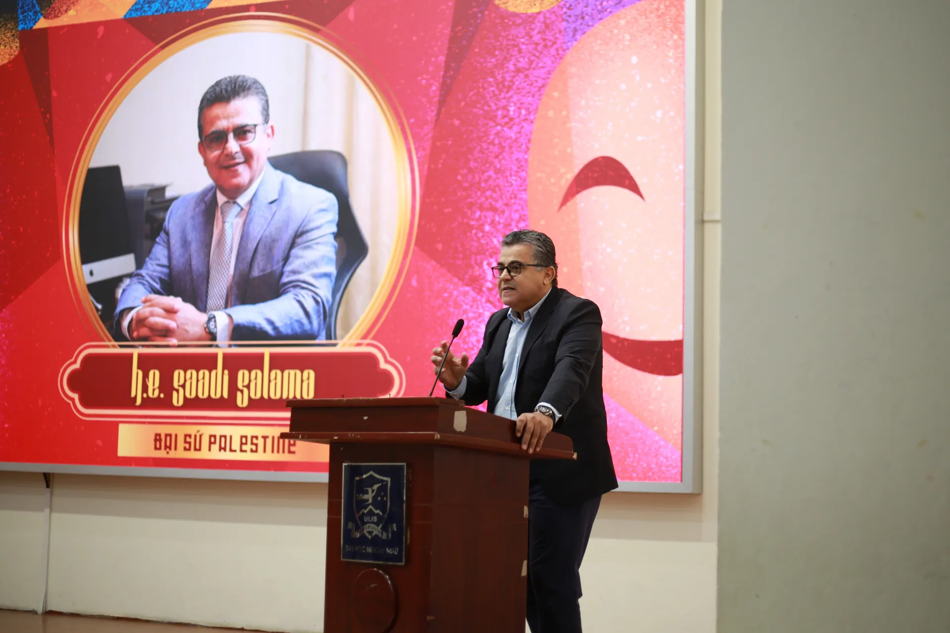 Palestinian Ambassador to Vietnam Saadi Salama speaks at the event