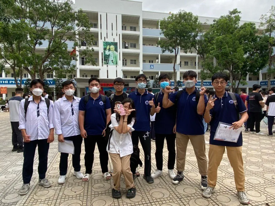 Candidates pose for photos after the literature test. Photo: Hong Giang |