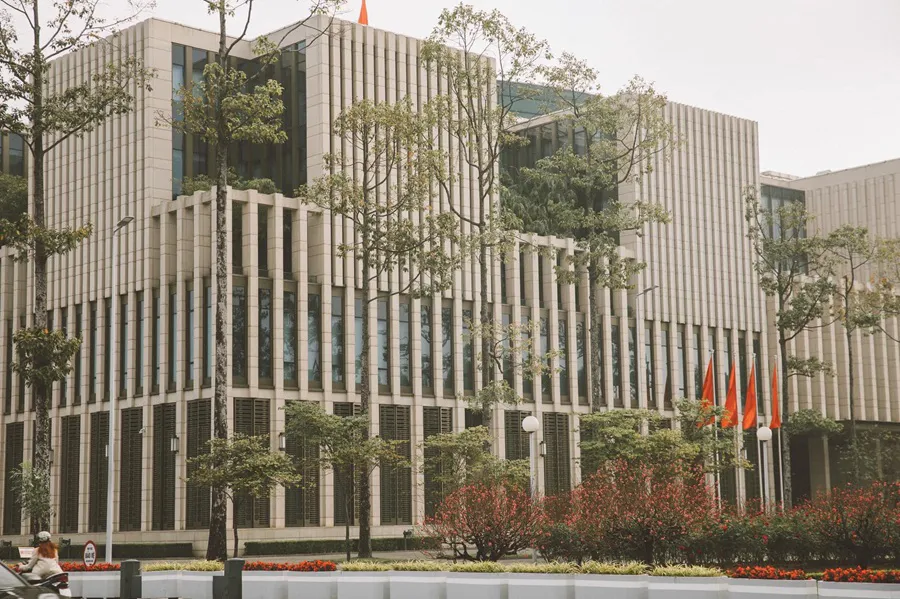 In 2009, construction began on the National Assembly building on Doc Lap Street in the Ba Dinh political center. The landmark is located opposite Lang Bac and near the archaeological site at 18 Hoang Dieu Street.