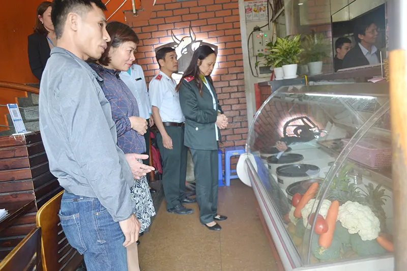Hanoi's interdisciplinary food safety inspection team inspects a steak shop in Lieu Giai ward, Ba Dinh district. Photo: Kinhtedothi.vn |