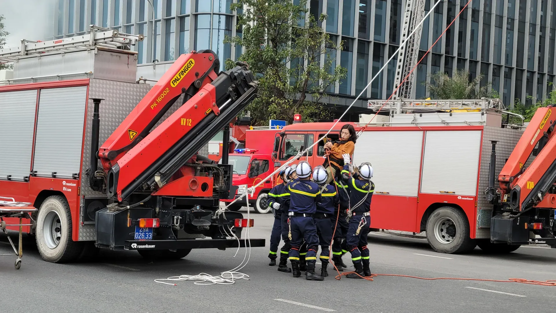 The drill took nearly two hours and ended with everyone being rescued. Lieutenant General Le Van Tuyen, Deputy Minister of Public Security, said such drills are vital in the context that many high-rise buildings have caught fire in Hanoi in recent years.