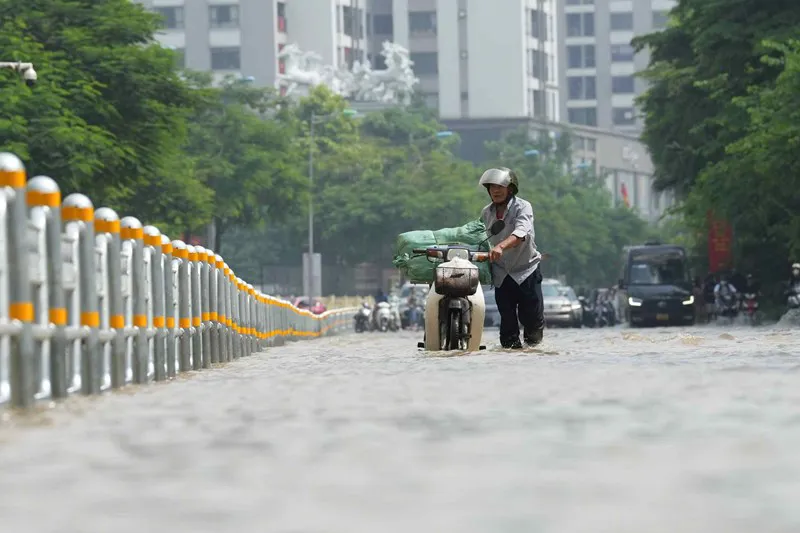 Flooding on Vo Chi Cong Street. Photo: Laodong.vn