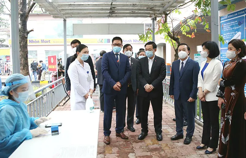 Municipal Party Chief Vuong Dinh Hue inspects the Covid-19 prevention and control at Thanh Nhan Hospital in Hanoi. Photo: Thanh Hai |