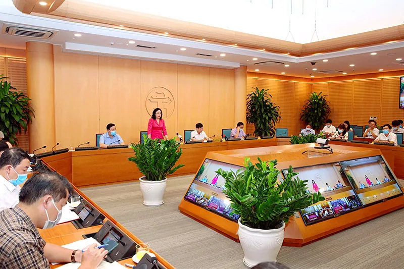 | Hanoi's officials at a meeting on Aug 25. Photo: Kinhtedothi |