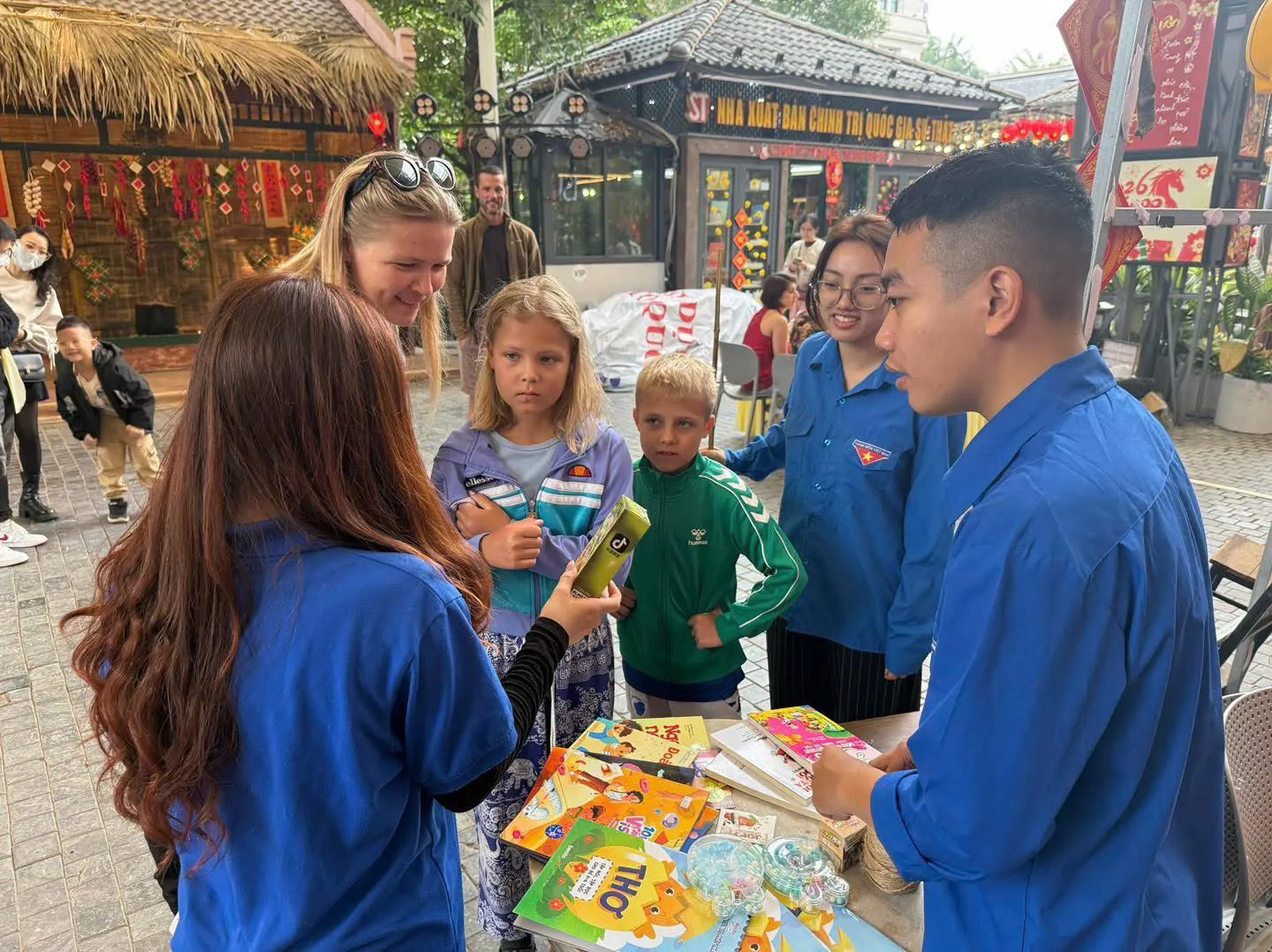 International visitors to Hanoi Book Street during Tet Holiday 2026. Photo courtesy of Hanoi Book Street