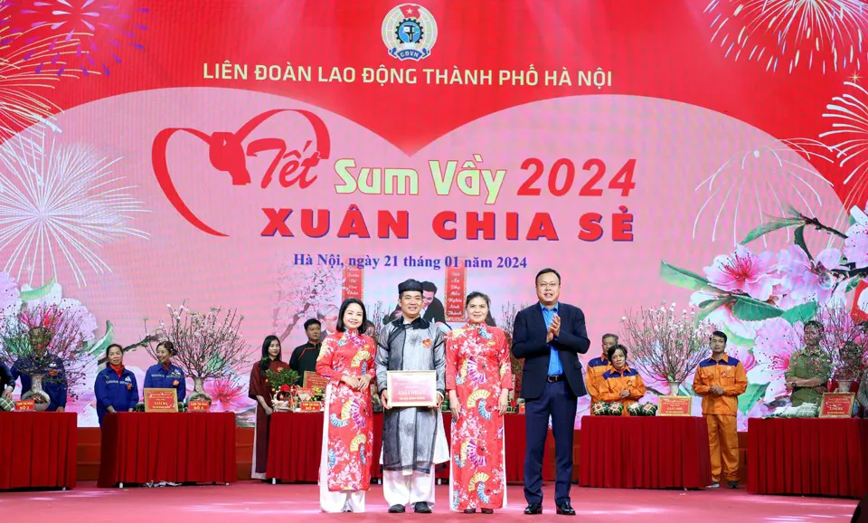 The program testifies to the role of the Hanoi government and enterprises in caring for the spiritual and material lives of trade unionists and workers, ensuring that everyone can enjoy a decent Tet celebration.