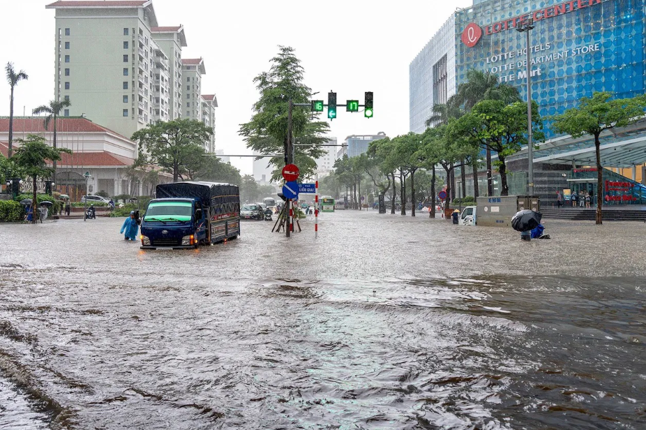 In September and October, Hanoi was hit by consecutive heavy rains that caused widespread flooding across many districts. According to the Hanoi Drainage Company, rainfall on the night of September 30 alone exceeded 300 millimeters in several locations, submerging streets and disrupting traffic.