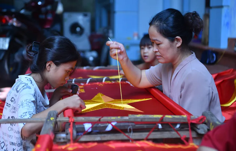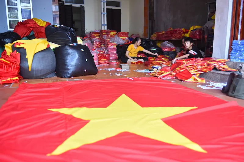 | The anniversary of the National Day (September 2) is considered the “flag season” which makes workers of Tu Van village busier than ever. |