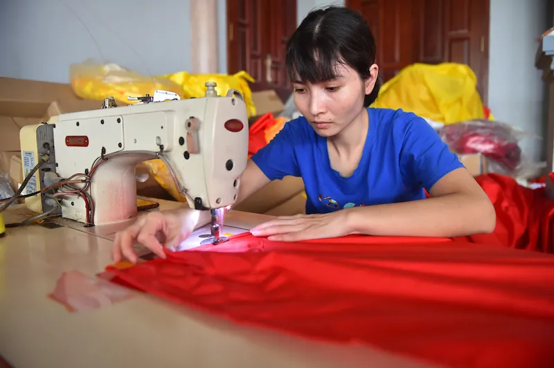 | Although making national flags doesn’t require much skill, the tailors need to be meticulous in their work to make sure each flag complies with regulated requirements. |