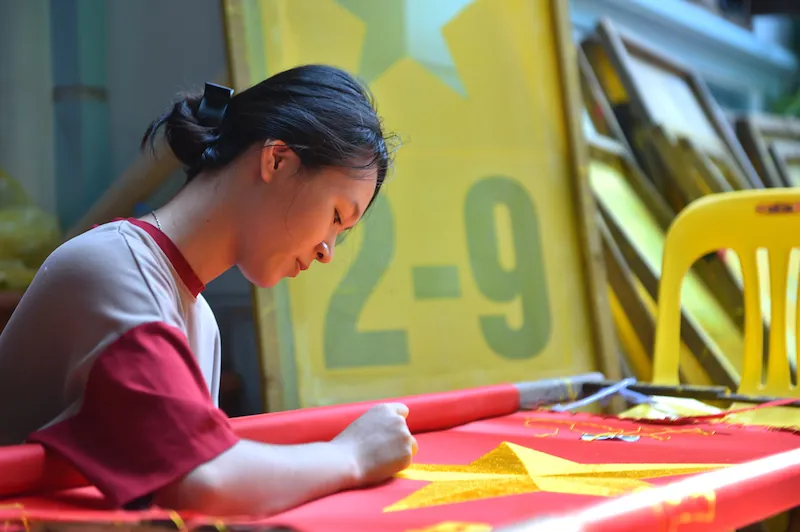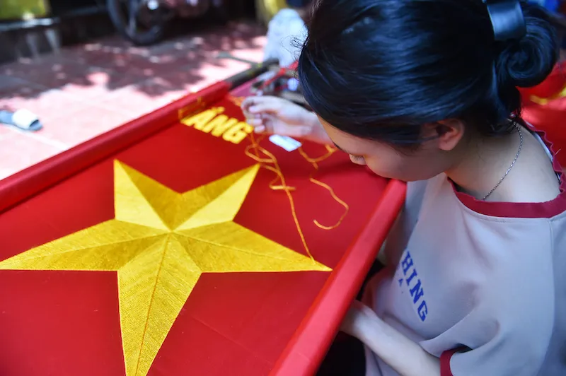 Located more than 30 km south of Hanoi, Tu Van village has been famous for sewing national flags for over 70 years. |