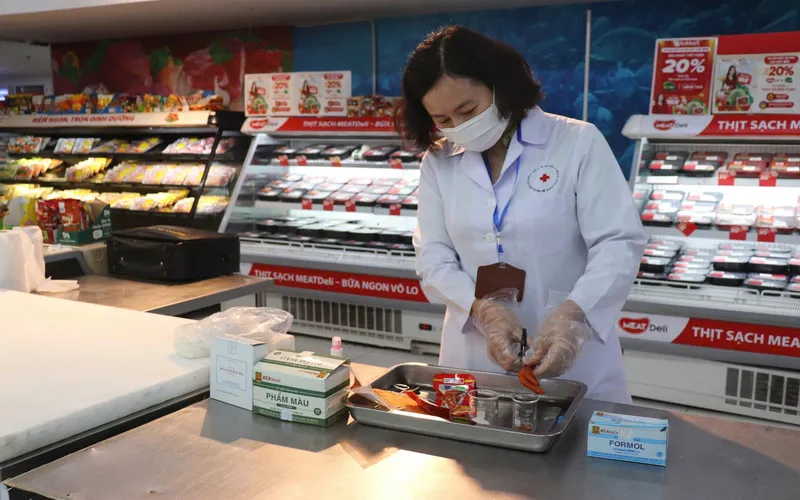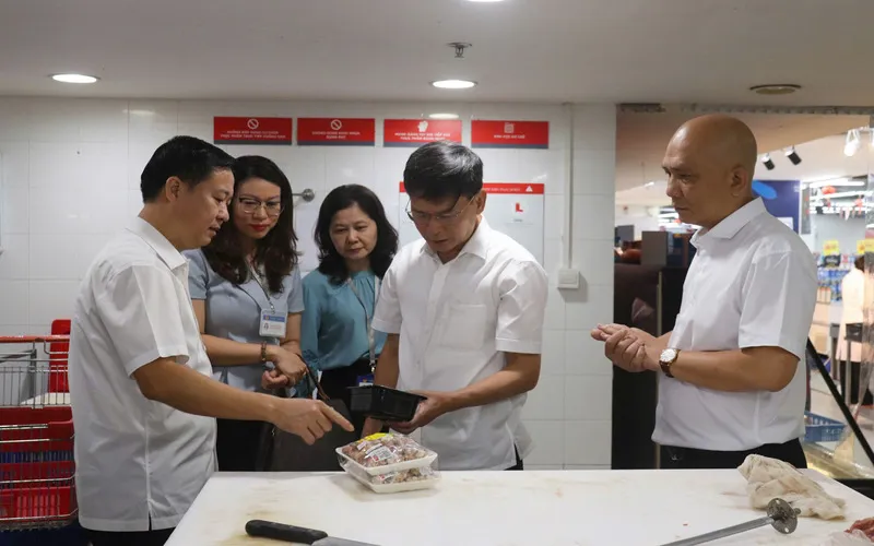 Inspection Team 1 of the Hanoi Food Safety Department inspects food at a supermarket in Hanoi. |