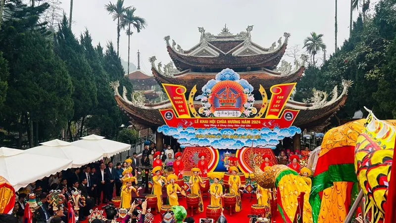 | The opening ceremony of the Huong Pagoda Festival in My Duc District on February 15. Photo: Ha Trinh/The Hanoi Times |