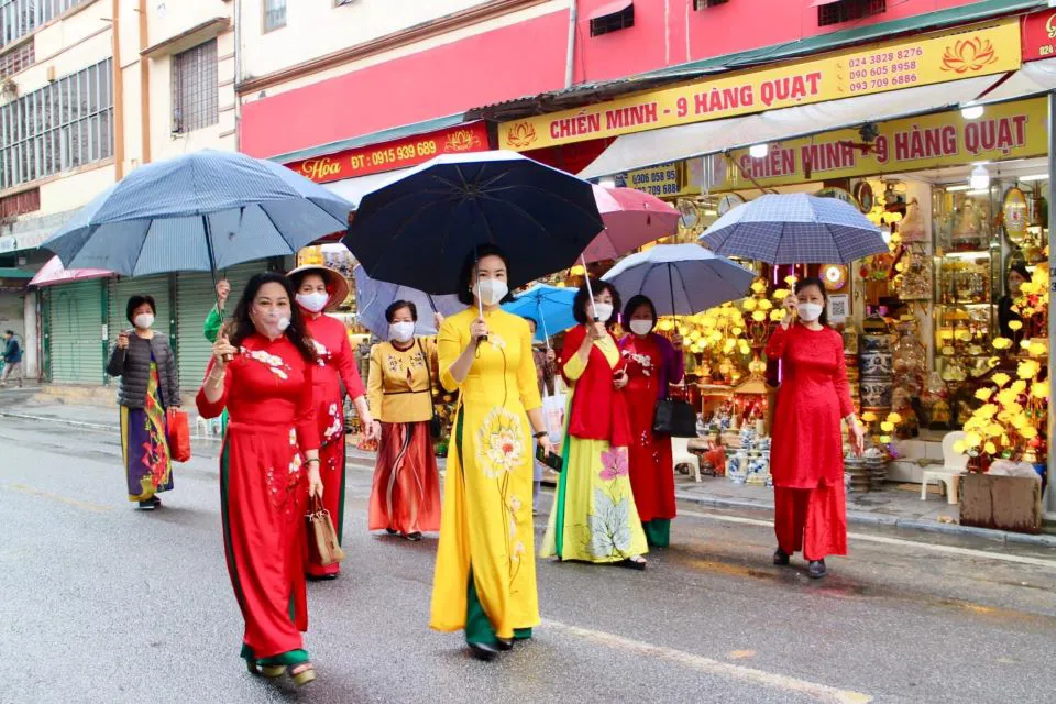 | The women in Hang Gai Ward, Hoan Kiem District respond to Vietnam Ao Dai Week with the activity titled “Ao dai in Hanoi streets”. |