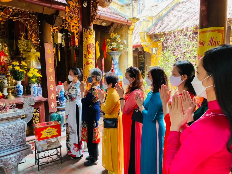 | The women from Yen Thai Ward, Hoan Kiem District performed the incense offering ceremony to Y Lan Empress (1044 - 1117) at Yen Thai Temple, Hoan Kiem District, Hanoi. |
