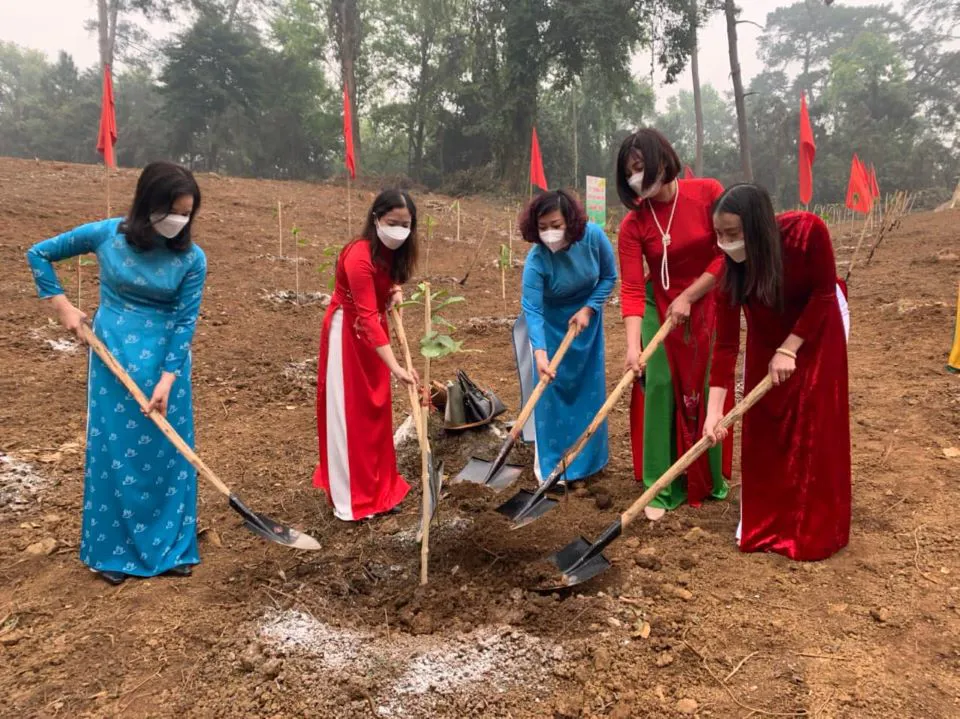 | Under the campaign, the Hanoi Women’s Union organized a tree-planting program called “Women Cultivate the Future” at President Ho Chi Minh’s relic at Da Chong site (K9 - Ba Vi district, Hanoi). |