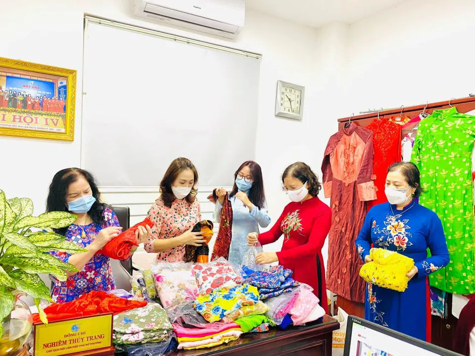 | Women from Lieu Giai Ward, Ba Dinh district donated more than 100 Ao dai attires to poor women in other provinces under a program titled “The Ao dai for Love in March 2022”. |