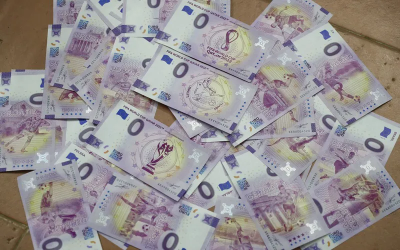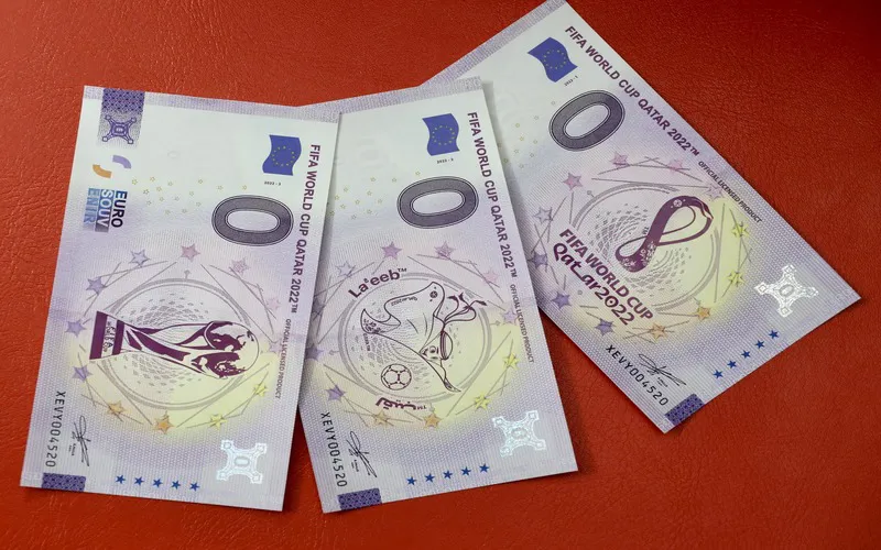 A collection of souvenir euro banknotes from the 2022 World Cup finals is attracting soccer fans and money collectors.