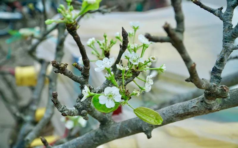 Small branches of wild pear flowers are most favored by customers for the family’s altar decoration. Some prefer big branches to adorn living rooms. |