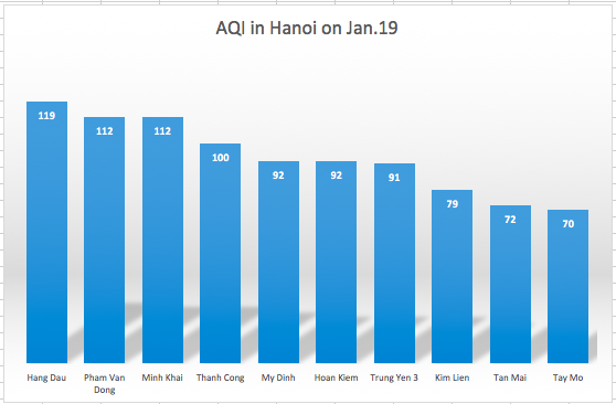 Hanoi’s air quality index (AQI) measured at 10 monitoring stations in the capital city today was in the range of from 27 to 56.