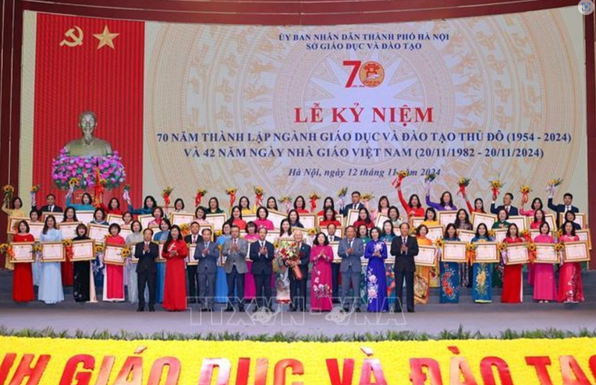 The event honored Hanoi’s educators, with several teachers receiving the titles of "People's Teacher" and "Outstanding Teacher" from the President.