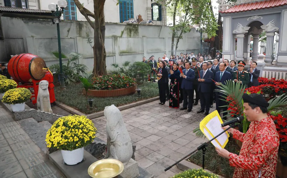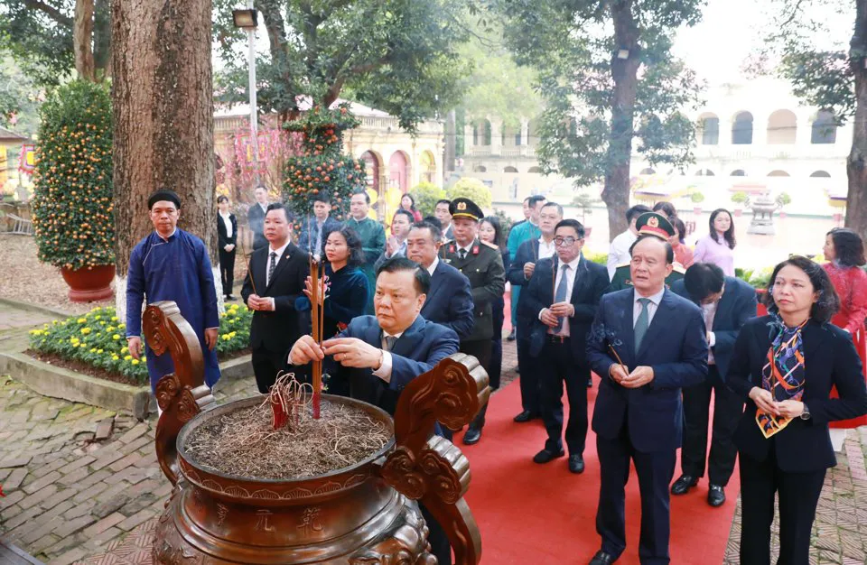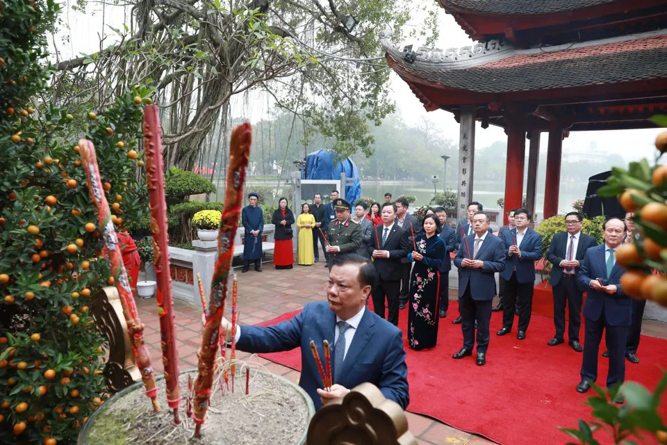 The city’s leaders attended incense offering ceremonies at the Monument of King Ly Thai To who relocated Vietnam’s capital city to Hanoi in 1010; the Monument of King Le Thai To – a military leader who restored the kingdom of Dai Viet after it was conquered by the Ming dynasty and founded the Later Le dynasty (1428); Ngoc Son Temple, built in commemoration of Tran Hung Dao, the greatest military commander of Vietnam; Kinh Thien Palace at UNESCO-recognized Thang Long Imperial Citadel; and the Ho Chi Minh Relic Area.