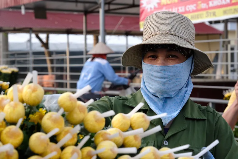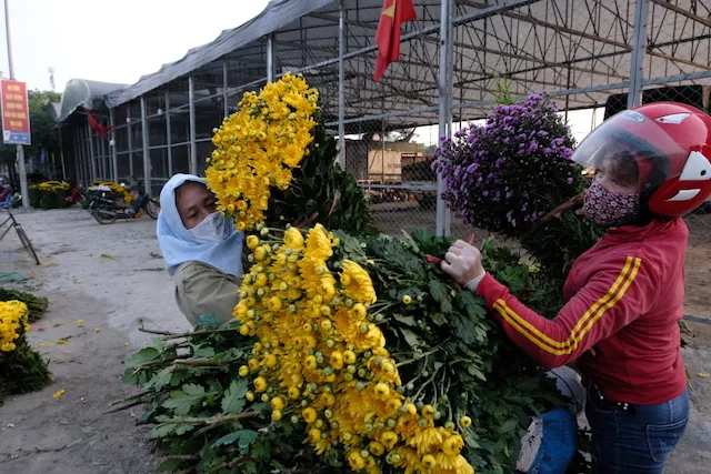 | After the lockdown, people in Ha Loi resume the supply of fresh flowers to the capital's residents. Photo: Kinhtedothi.vn |